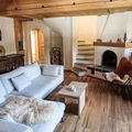 4-room apartment 150 m2 on 2 levels. Comfortable and cosy furnishings: living/dining room with open-hearth fireplace (only for decoration). Exit to the balcony. 1 double bedroom with shower/WC. Large, open kitchen (oven, dishwasher, 4 ceramic glass hob hotplates, toaster, kettle, freezer, electric coffee machine, raclette grill, fondue Set (cheese)). Sep. WC. Upper floor: gallery. 1 double bedroom with shower/WC. 1 room with 1 bed and 1 x 2 bunk beds, shower/WC. Balcony 25 m2, south facing position, patio 40 m2. Terrace furniture, balcony furniture, deck chairs (2). Beautiful view of the mountains, the countryside and the resort. Facilities: washing machine, dryer. Internet (WiFi, free). Parking, garage (2 cars) at the house, height 190 cm. Please note: non-smokers only.