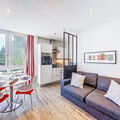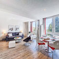 1-room studio 37 m2, on the mezzanine, north facing position. Very beautiful and modern furnishings: with 1 double sofabed (1 x 140 cm, length 190 cm), TV (flat screen), electric heating. Kitchenette (2 ceramic glass hob hotplates, toaster, kettle, raclette grill, combination microwave, fondue Set (cheese)). Shower, sep. WC. Beautiful view of the mountains and the valley. Facilities: hair dryer. Internet (WiFi, extra). Please note: non-smokers only. Smoke alarm. Offer by a private individual according to Art. 155, IV of CGI.