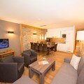 The terrace is the perfect spot in the apartment where you can enjoy your evening cuppa with your dear ones. You can stay comfortable inside from the heat with the floor heating available. Ski boot heaters, lift and the garage is provided for your convenience. A cot and high chair can be availed at a nominal fee for the young guests.