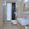 Ground floor: hallway, Living room(double sofa bed, TV), open kitchen(electric kettle, cooker(ceramic), coffee machine(filter), oven, microwave, dishwasher, fridge-freezer), bedroom(double bed), bedroom(double bed), Bedroom with bathroom(double bed, bunk bed, shower, washbasin, toilet), bathroom(shower, washbasin, toilet), bathroom, bath tub, shower, washbasin, toilet