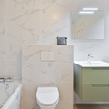 Bathroom 1: Bathtub, Washing machine, and Toilet