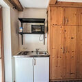 "Studio", 1-room apartment 20 m2. Beautiful and tasteful furnishings: living/sleeping room with 1 double bed (1 x 180 cm, length 200 cm), dining table and TV (flat screen). Kitchenette (2 hot plates, toaster, kettle, microwave, electric coffee machine). Shower, sep. WC. Heating. Balcony. Balcony furniture. Very beautiful panoramic view of the mountains. Facilities: Internet (WiFi, free). Please note: non-smokers only.