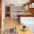 "Val Fleuri 208", 4-room apartment 100 m2 on 2nd floor, south facing position. Beautiful and tasteful furnishings: large living/dining room with open-hearth fireplace and cable TV (flat screen). Exit to the terrace. 1 large room with 1 double bed (1 x 160 cm, length 200 cm). Exit to the terrace. 2 large rooms, each room with 2 beds (90 cm, length 200 cm). Open kitchen (4 hot plates, oven, dishwasher, toaster, kettle, microwave, freezer, electric coffee machine, Capsules for coffee machine (Nespresso) extra, raclette grill, fondue Set (cheese)) with hatch. Bath/WC, shower/WC. Heating, electric heating, underfloor heating. Parquet floors. Very beautiful view of the mountains. Facilities: washing machine, dryer, hair dryer. Internet (WiFi, free). Parking. Please note: non-smokers only.