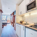 Residence "Les Olympiades", 7 storeys. In the centre of Val Thorens, in the resort, in a central, busy, sunny position in the residential district, 100 m from the skiing area. In the complex: lift, storage room for skis. In Winter: please take snow chains. Public car park at 50 m, extra. E-charging station. Shop, grocery, supermarket, shopping centre, restaurant 5 m, bar 50 m, bakery, café 5 m, pedestrian zone 2 m, bus stop "navette gratuit" 200 m, outdoor swimming pool 50 m. Sports centre 10 m, cable car 150 m, chair lift 50 m, gondola lift 10 m, slopes 50 m, ski rental 5 m, ski bus stop 150 m, ski school 100 m, ice rink 500 m. Nearby attractions: Centre Sportif 100 m. Well-known ski regions can easily be reached: domaine des 3 Vallées 100 m, Val Thorens – Orelle 100 m. Well-known lakes can easily be reached: Lac du Lou 800 m, Lac du Menuires 600 m. Please note: entertainment in the season. Suitable for families, baby equipment on request (extra). The owner does not accept any youth groups. Ski bus (free of charge). In case of good snow conditions, the house is accessible on skis. The apartment is located in a zone with limited traffic. Additional accommodations can be booked.