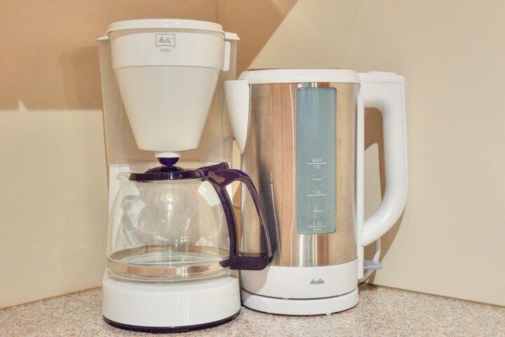 Ground floor: open kitchen(dining table, stove, electric kettle, toaster, coffee machine(filter), oven, microwave, dishwasher, fridge-freezer), Living/diningroom(TV(satellite), DVD player, stereo unit), guest toilet, storage(washing machine)