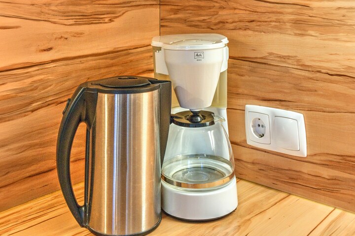 Living room(TV, DVD player, stereo unit), open kitchen(dining table, stove, electric kettle, toaster, coffee machine(filter), oven, microwave, dishwasher, fridge-freezer), bedroom(double bed), bedroom(double bed), bedroom(single bed, single bed), bathroom(bath tub, toilet), bathroom(shower, private infrared cabin, toilet, washing machine), recreation room(shared with other guests)(infrared sauna(shared with other guests), sauna(shared with other guests), billiards(shared with other guests)), heating(central), terrace, garden, garden furniture, parking, parasol, high chair, Charging post for electric cars, baby crib(free)