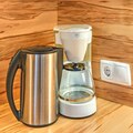 Living room(TV, DVD player, stereo unit), open kitchen(dining table, stove, electric kettle, toaster, coffee machine(filter), oven, microwave, dishwasher, fridge-freezer), bedroom(double bed), bedroom(double bed), bedroom(single bed, single bed), bathroom(bath tub, toilet), bathroom(shower, private infrared cabin, toilet, washing machine), recreation room(shared with other guests)(infrared sauna(shared with other guests), sauna(shared with other guests), billiards(shared with other guests)), balcony, heating(central), garden furniture, parking, parasol, high chair, Charging post for electric cars, baby crib(free)