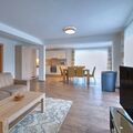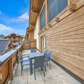 Inside, the apartment combines modern style with comfort for up to six guests. Relax in the spacious living and dining area, featuring a TV, DVD player, stereo unit, and an open kitchen with a hob, oven, microwave, fridge-freezer, dishwasher, coffee machine, toaster, and colorful dining chairs. Three bedrooms—each thoughtfully designed—ensure restful nights after exciting days on the slopes. The bathrooms are neat and well-appointed, including an infrared sauna in the main bathroom, and floor heating throughout adds a cozy touch. Step out onto the balcony or spacious terrace to enjoy mountain views while unwinding with family or friends.