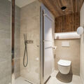 Bathroom 1: Double hand basin, Walk-in shower, Hairdryer, Towel dryer, and Toilet