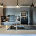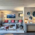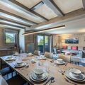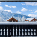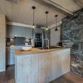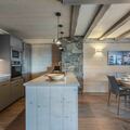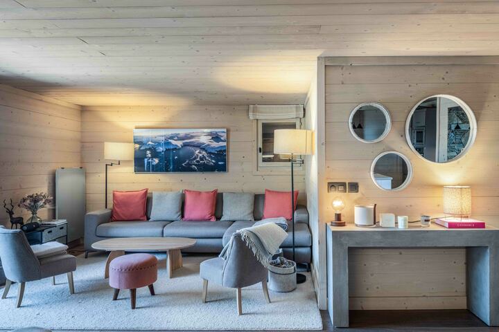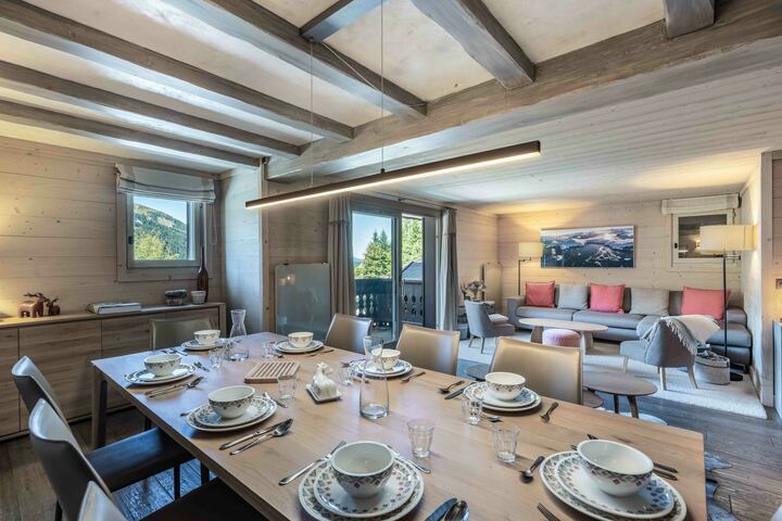 Living area: Spacious 42 m² living area featuring a modern fully equipped kitchen, a cozy lounge, and a welcoming dining space, all opening onto a balcony with breathtaking mountain views.