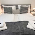 "Lechner", 3-room apartment lower ground floor. Bright, renovated, beautiful and modern furnishings: entrance hall. Living/dining room with 1 sofabed, dining table, cable TV and flat screen. Exit to the garden, to the terrace. 2 double bedrooms. Open kitchen (dishwasher, 4 ceramic glass hob hotplates, toaster, kettle, electric coffee machine). 2 showers/WC. Parquet floors, natural stone floors. Large terrace, large garden. Terrace furniture, barbecue, deck chairs. Marvellous panoramic view of the countryside. Facilities: Internet (WiFi). Please note: non-smokers only. Fire extinguisher. Maximum occupancy 4 people. 50613-018294-2023