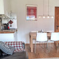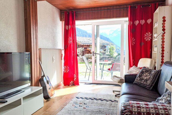 "Apollo", 2-room apartment 30 m2, on the ground floor. Simple and practical furnishings: living/dining room with TV. Exit to the terrace. 1 room with 1 double bed (160 cm, length 200 cm). Open kitchen (oven, dishwasher, 4 ceramic glass hob hotplates, kettle, electric coffee machine, Capsules for coffee machine (Nespresso), raclette grill, fondue Set (cheese)). Bath/WC. Small terrace. Terrace furniture. Beautiful view of the mountains and the countryside. Free. Parking at the house. Please note: non-smokers only.