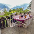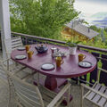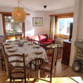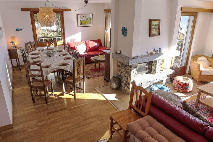 "Chalet Aglaia", 5-room chalet 220 m2 on 3 levels, south facing position. Object suitable for 8 adults + 2 children. Spacious, comfortable and beautiful furnishings: living/dining room with open-hearth fireplace, cable TV and flat screen. Exit to the balcony. Kitchen (oven, dishwasher, 4 ceramic glass hob hotplates, toaster, kettle, microwave, freezer, electric coffee machine, raclette grill, fondue Set (cheese)). Exit to the terrace. On the lower ground floor: 1 room with 2 beds (90 cm, length 200 cm), separate WC. Upper floor: 1 large room with sloping ceilings with 2 beds (80 cm, length 200 cm), 1 french bed (160 cm, length 200 cm). 1 room with 1 french bed (160 cm, length 200 cm). 1 room with sloping ceilings with 1 french bed (140 cm, length 200 cm). Bath/WC, shower/WC. Large balcony, south facing position and, east facing position, small terrace, north facing position and, east facing position. Balcony furniture, barbecue (portable), deck chairs (2). Very beautiful view of the mountains, the valley and the countryside. Facilities: washing machine, iron, children's high chair, baby cot for up to 3 year olds, hair dryer. Internet (WiFi, free). Garage (2 cars) at the house, height 190 cm, width 230 cm. Please note: suitable for families. Non-smoking house. Baby cot without bedlinen and without covers. Cot without linen and duvet. It is forbidden to make noise after 10pm, as the environment is very sensitive to noise.