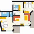 70 m2. More information by the provider: 70m2, livingroom with sofa and little table, bench seat with dining table, two separate double rooms, kitchen with 3 plate stove and oven, fridge etc. Bathroom plus bath with separate toilet, satellite TV/radio, internet, telephone, south facing balcony with terrace. Possibility to contact us for any questions you have since we live in the same building.