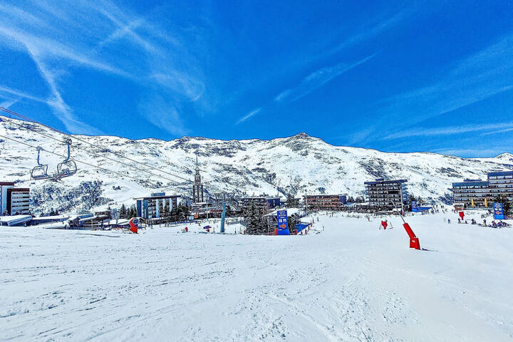 Residence "Balcons D'Olympie", 7 storeys. In the district of Preyerand 500 m from the centre of La Croisette, directly by the skiing area. In the complex: lift, storage room for skis. Public parking on the road. Grocery 200 m, shopping centre 500 m, restaurant 100 m, bus stop "Gare routière Les Menuires" 800 m. Sports centre 500 m, skisport facilities 50 m, slopes 10 m, ski school 500 m, cross country ski track 100 m. Well-known ski regions can easily be reached: 3 Vallées. Please note: lift to 5th floor. The photograph shows a typical example. Additional accommodations can be booked. The district of Preyerand is connected by cable car (free, from 08.00 - 23.00) to the centre "La Croisette".