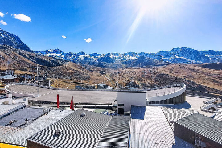 Residence "Les Olympiades", 7 storeys. In the centre of Val Thorens, in the resort, in a central, busy, sunny position in the residential district, 100 m from the skiing area. In the complex: lift, storage room for skis. In Winter: please take snow chains. Public car park at 50 m, extra. E-charging station. Shop, grocery, supermarket, shopping centre, restaurant 5 m, bar 50 m, bakery, café 5 m, pedestrian zone 2 m, bus stop "navette gratuit" 200 m, outdoor swimming pool 50 m. Sports centre 10 m, cable car 150 m, chair lift 50 m, gondola lift 10 m, slopes 50 m, ski rental 5 m, ski bus stop 150 m, ski school 100 m, ice rink 500 m. Nearby attractions: Centre Sportif 100 m. Well-known ski regions can easily be reached: domaine des 3 Vallées 100 m, Val Thorens – Orelle 100 m. Well-known lakes can easily be reached: Lac du Lou 800 m, Lac du Menuires 600 m. Please note: entertainment in the season. Suitable for families, baby equipment on request (extra). The owner does not accept any youth groups. Ski bus (free of charge). In case of good snow conditions, the house is accessible on skis. The apartment is located in a zone with limited traffic. Additional accommodations can be booked.