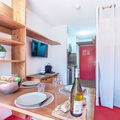 1-room apartment 20 m2, south facing position. Partly renovated in 2025, practical and tasteful furnishings: living/dining room with 1 bed (80 cm, length 190 cm), 1 pull-out bed (2 pers. 2 x 80 cm, length 190 cm), dining table and TV (flat screen), electric heating. Exit to the balcony, south facing position. Entrance hall with kitchen corner. Kitchenette (dishwasher, 2 induction hot plates, toaster, kettle, microwave, electric coffee machine, Capsules for coffee machine (Nespresso) extra). Shower, sep. WC. Carpet. Small balcony 3 m2. Beautiful view of the mountains, the valley, the ski run and the resort. Facilities: safe. Internet (WiFi, extra). Please note: non-smokers only. Smoke alarm. Offer by a private individual according to Art. 155, IV of CGI.