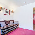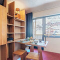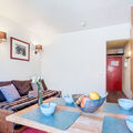 1-room studio 25 m2, north facing position. Practical furnishings: living/dining room with 1 pull-out bed (2 pers. 2 x 80 cm, length 190 cm), dining table, TV, flat screen and electric heating. 1 room with 1 double bed (1 x 140 cm, length 190 cm). Exit to the balcony. Kitchenette (2 hot plates, dishwasher, toaster, kettle, electric coffee machine, combination microwave). Bathroom, sep. WC. Carpet. Small balcony 3 m2. Beautiful view of the mountains, the ski run and the resort. Facilities: safe. Internet (WiFi, extra). Please note: non-smokers only. Maximum 1 small pet/ dog allowed. Offer by a private individual according to Art. 155, IV of CGI.