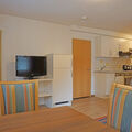 "Typ II", 3-room apartment 45 to 50 m2. Spacious and bright, cosy furnishings: living/dining room with dining nook, satellite TV and flat screen. 1 double bedroom with satellite TV and flat screen. 1 room with 2 beds. Open kitchen (oven, dishwasher, 4 ceramic glass hob hotplates, microwave). Shower, sep. WC. Parquet floors. Balcony. Balcony furniture. Beautiful view of the countryside. Facilities: hair dryer. Internet (WiFi, free). Please note: non-smokers only. Maximum 2 pets/ dogs allowed. The property is one of a type of property or apartment. Mostly with balcony!