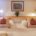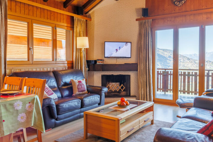 "Hortensia 33", 4-room penthouse 70 m2 on 3rd floor. Partly renovated, beautiful furnishings: entrance hall. Living/dining room with open-hearth fireplace (only for decoration), cable TV and DVD. Exit to the balcony, west facing position and east facing position. 1 room with 2 beds. Exit to the balcony, east facing position. 1 room with 2 beds. 1 children's room with 1 x 2 bunk beds. Open kitchen (oven, dishwasher, 4 induction hot plates, toaster, kettle, microwave, electric coffee machine, fondue Set (cheese)). Bath/WC, shower/WC. 2 balconies. Balcony furniture. Very beautiful view of the mountains and the valley. Facilities: hair dryer. Internet (WiFi, free). Please note: non-smokers only, no parking.