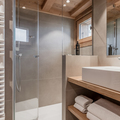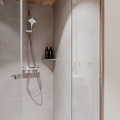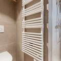 Bathroom 2: Shower, Hairdryer, Towel dryer, and Single hand basin