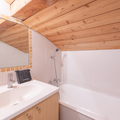 On the first floor of the chalet, discover the living area featuring a lounge, dining room, and a fully equipped open kitchen. A beautiful south-facing terrace with outdoor furniture, as well as a double bedroom with an en-suite bathroom, complete this level.