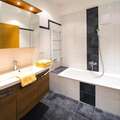 Living room(TV, DVD player, stereo unit), open kitchen(dining table, stove, electric kettle, toaster, coffee machine(filter), oven, microwave, dishwasher, fridge-freezer), bedroom(double bed), bedroom(double bed), bedroom(double bed), bathroom(bath tub, toilet), bathroom(shower, private infrared cabin, toilet, washing machine), recreation room(shared with other guests)(infrared sauna(shared with other guests), sauna(shared with other guests), billiards(shared with other guests)), balcony, heating(central), garden furniture, parking, parasol, high chair, Charging post for electric cars, baby crib(free)