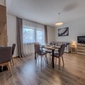 The apartment combines comfort and warmth with a touch of Tyrolean charm. The open living and dining area invites you to relax on the comfy sofa bed after an active day, enjoy a good movie on the satellite TV, or share a hearty meal at the dining table. The fully equipped kitchen complete with a ceramic hob, oven, dishwasher, fridge-freezer, toaster, kettle, and coffee maker — makes home-style cooking easy and enjoyable.