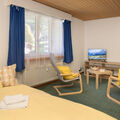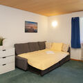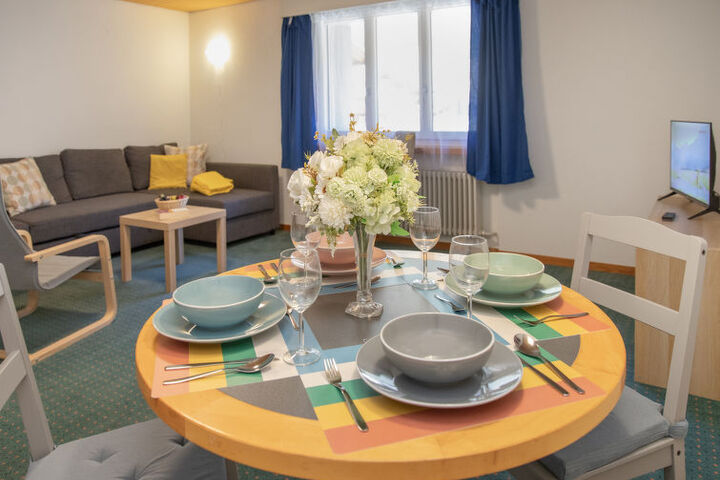 "BeKb-Gebäude Apt 07", 2-room apartment on the top floor. Cosy furnishings: living/dining room with 1 sofabed (140 cm, length 200 cm), cable TV. 1 room with 1 bed (90 cm, length 190 cm), 1 double bed (160 cm, length 190 cm). Kitchen (4 hot plates, oven, dishwasher, toaster, kettle, raclette grill, fondue Set (cheese)). Bath/WC. Carpet. Very beautiful view of the mountains and the resort. Facilities: hair dryer. Internet (WiFi, free). Please note: suitable for families. Non-smoking house.