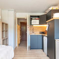 "LE Vernon", 1-room studio 20 m2 on 6th floor. Object suitable for 4 adults. Living room with 1 sofabed and 2 x 2 bunk beds, 1 pull-out bed and TV. Open kitchen (2 hot plates, dishwasher, toaster, kettle, microwave, electric coffee machine). Shower/WC. Balcony. View of the mountains and the ski run. Facilities: Internet (WiFi, free). Please note: non-smokers only. Offer by a commercial proprietor according to Art. 155, IV, CGI