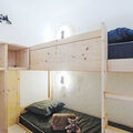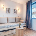 "A 209", 1-room apartment on 2nd floor, north facing position. Partly renovated in 2025, very comfortable furnishings: living/dining room with 1 pull-out bed (1 pers. 2 x 80 cm, length 190 cm), dining table and TV. Sleeping alcove with (1 x 80 cm, length 190 cm), 1 x 2 bunk beds. Kitchenette (2 induction hot plates, toaster, kettle, microwave, electric coffee machine). Bath/WC. Electric heating. Carpet. Small balcony 3 m2, north facing position. Beautiful panoramic view of the mountains, the valley and the ski run. Facilities: Internet (WiFi, extra). Please note: non-smokers only. Smoke alarm. Offer by a private individual according to Art. 155, IV of CGI. 73257011339WF