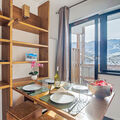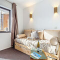 1-room studio 21 m2 on 6th floor, south facing position. Comfortable furnishings: living/dining room with 1 pull-out bed (1 pers. 2 x 80 cm, length 190 cm), dining table, TV, flat screen and electric heating. Exit to the balcony, south facing position. Entrance hall with kitchen corner. Sleeping alcove with 1 x 2 bunk beds (80 cm, length 190 cm). Kitchenette (2 hot plates, dishwasher, toaster, kettle, microwave, grill, electric coffee machine). Bathroom, sep. WC. Carpet. Small balcony 3 m2. Beautiful panoramic view of the mountains, the valley, the ski run and the resort. Facilities: safe. Internet (WiFi, extra). Please note: non-smokers only. Smoke alarm. Offer by a private individual according to Art. 155, IV of CGI. 73257007087DP