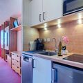 1-room studio 20 m2 on 2nd floor, south facing position. Living/dining room with 1 bed (80 cm, length 190 cm), 1 pull-out bed (2 pers. 2 x 80 cm, length 190 cm), dining table, TV, flat screen and electric heating. Exit to the balcony, south facing position. Kitchenette (2 hot plates, dishwasher, kettle, microwave, electric coffee machine). Bathroom, sep. WC. Carpet. Small balcony 3 m2. Beautiful view of the mountains, the valley, the ski run and the resort. Please note: non-smokers only. Offer by a private individual according to Art. 155, IV of CGI.