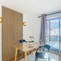 2-room apartment 42 m2 on 7th floor, south facing position. Partly renovated in 2025, comfortable and modern furnishings: living/dining room with 1 double sofabed (1 x 140 cm, length 190 cm), dining table and TV. Exit to the balcony, south facing position. Entrance hall with kitchen corner. Kitchenette in the entrance (oven, dishwasher, 3 induction hot plates, kettle, microwave, electric coffee machine, Capsules for coffee machine (Nespresso) free). Exit to the balcony, south facing position. Bathroom, sep. WC. Upper floor: (spiral staircase), 1 large room with 1 double bed (1 x 140 cm, length 200 cm), electric heating. Sleeping alcove with 1 x 2 bunk beds (80 cm, length 190 cm), electric heating. Shower/WC. Parquet floors. Small balcony 3 m2, south facing position. Very beautiful view of the mountains, the valley, the ski run and the resort. Facilities: safe, children's high chair, baby cot (extra), hair dryer. Internet (WiFi, extra). Please note: non-smokers only. Offer by a private individual according to Art. 155, IV of CGI. 73257010813DP