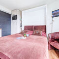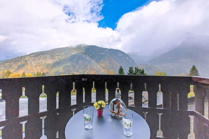"L'Aiguille Noire", 1-room studio 24 m2 on 2nd floor. Living/dining room with 1 wall-trunk bed (160 cm, length 200 cm). Exit to the balcony. Alcove with 2 beds (80 cm, length 190 cm), 1 x 1 bunk beds (90 cm, length 190 cm). Kitchenette (dishwasher, 2 induction hot plates, toaster, kettle, microwave, electric coffee machine, Capsules for coffee machine (Senseo) extra, fondue Set (cheese)). Shower, sep. WC. Small balcony 3 m2, east facing position and south-east facing position. Very beautiful panoramic view of the mountains. Facilities: Internet (WiFi, extra). Please note: non-smokers only. Maximum 1 pet/ dog allowed. TV only FR. Smoke alarm, no lift. Offer by a private individual according to Art. 155, IV of CGI.