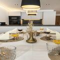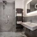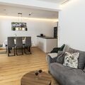 Kitchenette(electric kettle, coffee machine, oven, microwave, fridge-freezer), Living/diningroom(single sofa bed, TV, dining table), bedroom(double bed, TV, balcony), bedroom(double bed, balcony), bedroom(double bed), bathroom(shower, washbasin, toilet), bathroom(shower, washbasin, toilet), washing machine, balcony, lift