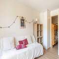 The open-plan electric kitchen comes fully equipped with a refrigerator, microwave, dishwasher, coffee machine, toaster, kettle, and all the necessary utensils and dishware. Whether you're preparing a hearty breakfast before hitting the slopes or a cozy dinner after a day outdoors, this studio combines practicality with charm for a truly memorable alpine retreat.
