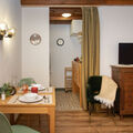 "L'Eden 10", 1-room studio 21 m2 on 3rd floor, south-west facing position. Practical and comfortable furnishings: living/sleeping room with 2 beds (90 cm, length 200 cm), dining nook, cable TV and international TV channels. Exit to the balcony, south-west facing position. Small, open kitchen (3 hot plates, oven, toaster, kettle, electric coffee machine, Capsules for coffee machine (Tassimo), raclette grill, fondue Set (cheese)). Shower/WC. Small balcony, south-west facing position. Balcony furniture. View of the mountains. Facilities: Internet (WiFi, free). Parking (1 car). Please note: non-smokers only.