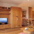 "Ferme de Sandra A31", 2-room apartment 50 m2 on 3rd floor, north facing position. Object suitable for 2 adults + 2 children. Bright, comfortable and beautiful furnishings: living/dining room with 1 double sofabed and cable TV. Exit to the balcony, north facing position. 1 room with 1 double bed. Exit to the balcony, south facing position. Open kitchen (oven, dishwasher, 4 ceramic glass hob hotplates, toaster, kettle, electric coffee machine). Exit to the balcony, south facing position. Shower/WC, double hand-basin. Underfloor heating. Balcony, north facing position balcony, south facing position. Balcony furniture. Very beautiful view of the mountains. Facilities: hair dryer. Internet (WiFi, free). Parking space n 7 (1 car). Please note: non-smokers only. Instead of an enclosed bedroom, some sleeping areas are located in an open-plan area (gallery, alcove, etc.).
