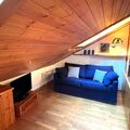 "Mansarda Pineta", 2-room apartment 53 m2 on 3rd floor. With sloping ceilings, very simple and practical furnishings: 1 double bedroom with 1 bed (160 cm, length 190 cm). Open kitchen (4 ceramic glass hob hotplates, microwave) with dining table, 1 bed (160 cm, length 190 cm), open-hearth fireplace (only for decoration), TV. Exit to the balcony. Shower/bidet/WC. Electric heating. Wooden floors. Small balcony. Partial panoramic view of the mountains. Facilities: baby cot for up to 2 year olds (extra), hair dryer. Garage space n 7 on the property (1 car). Please note: non-smokers only, parking space for small car only. Fire extinguisher. IT022093C2TA7BXSTY