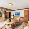 "Kitzbüheler Horn", 3-room apartment 88 m2 on 1st floor. Cosy furnishings: 2 rooms, each room with 1 double bed (180 cm, length 200 cm). Living room with 2 sleeping facilities (140 cm, length 200 cm), TV and flat screen. Exit to the balcony. Open kitchen (oven, 4 ceramic glass hob hotplates, toaster, kettle, electric coffee machine) with dining table. Bath/shower, sep. WC, double hand-basin. Balcony. Balcony furniture. View of the forest. Facilities: Internet (WiFi, free). Please note: non-smokers only. Maximum 1 pet/ dog allowed. Smoke alarm. All divan beds are fully functional beds with a slatted frame and mattress.