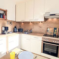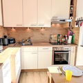 3-room apartment 70 m2 on 1st floor. Spacious and bright, cosy furnishings: 1 room with 1 double bed (2 x 90 cm, length 200 cm), 1 sleeping facility (90 cm, length 200 cm). 1 room with 2 beds (90 cm, length 200 cm). Living room with TV and flat screen. Kitchen (oven, 4 ceramic glass hob hotplates, toaster, kettle, electric coffee machine) with dining table. Shower, sep. WC. Balcony. Very beautiful panoramic view of the mountains. Facilities: Internet (WiFi, free). Parking (1 car). Please note: suitable for families. Non-smokers only. Smoke alarm.