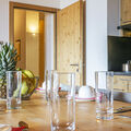 "T-Resort La Tzoumaz 4p8", 4-room apartment 72 to 85 m2. Bright, comfortable and beautiful furnishings: living/dining room with 1 pull-out bed (2 pers. 2 x 80 cm, length 200 cm), digital TV, international TV channels and flat screen. Exit to the balcony, to the terrace. 1 room with 1 double bed (2 x 80 cm, length 200 cm). 2 rooms, each room with 2 beds (80 cm, length 200 cm). Open kitchen (dishwasher, 4 induction hot plates, microwave, electric coffee machine, Capsules for coffee machine (Nespresso) extra) with dining table. Bath/WC, shower/WC, sep. WC. Heating. Balcony or terrace. View of the ski run and the countryside. Facilities: children's high chair, baby cot (extra). Internet (WiFi, free). Please note: suitable for families. Non-smokers only. Maximum 1 pet/ dog allowed.