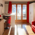 "Beau Séjour 26", 1-room studio 20 m2 on 4th floor, south facing position. Fully renovated in 2021, comfortable and beautiful furnishings: living/sleeping room with 1 double sofabed (140 cm, length 200 cm), cable TV. Open kitchen in the entrance (2 ceramic glass hob hotplates, toaster, kettle, electric coffee machine, Capsules for coffee machine (Dolce Gusto) extra, raclette grill, combination microwave, fondue Set (cheese)). Shower/WC. Balcony, south facing position. Balcony furniture. View of the mountains and the resort. Facilities: Internet (WiFi, free). Please note: non-smokers only. Maximum 1 pet/ dog allowed.