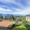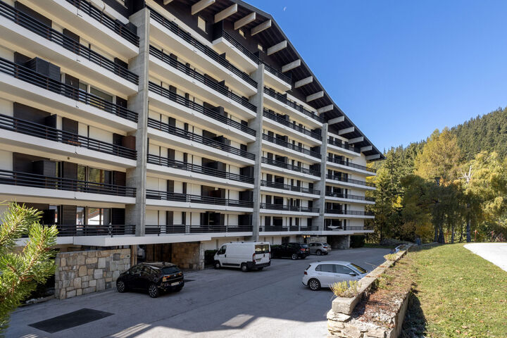 The sauna (16:00-20:00) is not available in low season. Swimming pool closed in November. Large residence "Cransalpin". Above Montana, 1.2 km from the centre of Montana, in a sunny, elevated position, 1.1 km from the lake, 800 m from the skiing area, south-west facing position. For shared use: garden with lawn, indoor pool heated (13 x 8 m, depth 50 - 200 cm, seasonal availability: 01.Dec. - 31.Oct. pool opening hours: 08:00-20:00). Tennis. In the house: sauna, lift, storage room for skis, central heating system, washing machine, tumble dryer (for shared use, extra). Parking (limited number of spaces). Shop 1.2 km, supermarket 1.3 km, restaurant 1 km, bakery 1.4 km, bus stop "Vermala Soleil" 200 m, railway station "Funiculaire Montana Gare" 1.5 km, bathing lake "Moubra" 2.2 km, lake Grenon 1.1 km. Golf course (18 hole) 2.3 km, skisport facilities 800 m, ice rink 1.4 km. Please note: ski bus (free of charge). Additional accommodations can be booked.