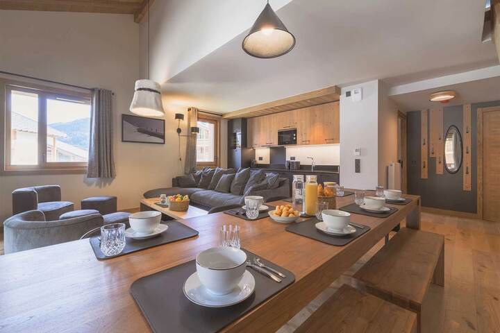 Nestled in the heart of a snow-covered landscape facing the majestic Mont Blanc, this elegant apartment in the L’Éclat des Vériaz residence offers the perfect blend of Alpine charm and modern luxury. Located just minutes from the chic village of Megève, guests can explore cobbled streets, exclusive boutiques, and Michelin-starred restaurants while enjoying a peaceful mountain retreat in an authentic and refined atmosphere.