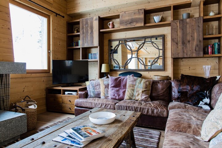 The chalet in Chamonix-Mont-Blanc has 6 bedrooms and capacity for 12 persons. Accommodation of 275 m² tastefully-furnished and is spacious, It has mountain. The property is located 99 m airport "Geneva Airport", 400 m bus station "Les Gaillands bus stop", 550 m lake "Lac de Gaillands", 1 km river "Arve", 1 km train station "Pelerins", 1 km city "Chamonix", 2 km bus station "Chamonix Sud Bus Station", 2 km ski resort "Le Brevent", 2 km train station "Chamonix-Mont-Blanc", 2 km ski resort "Savoy Nursery Slopes", 2 km supermarket "Carrefourr", 2 km hospital "Hospital Mont-Blanc", 3 km ski resort "Planards Nursery Slopes", 5 km ski resort "La Flegere", 6 km golf course "Chamonix les Praz 18 hole golf course", 7 km ski resort "Les Houches", 10 km ski resort "Grands Montets", 14 km ski resort "Le Tour & Vallorcine", 99 km international airport "Geneva Airport" and it is located in a a quiet zone and in a mountainous area. The accommodation is equipped with the following items: garden, outdoor furniture, terrace, washing machine, dryer, barbecue, fireplace, iron, internet (Wi-Fi), hair dryer, central heating, open-air parking in the same building, 2 fans, 1 TV, satellite tv (Languages: English, French), DVD. The open plan kitchen, of gas, is equipped with refrigerator, microwave, oven, freezer, dishwasher, dishes/cutlery, kitchen utensils, coffee machine, toaster, kettle and stove.