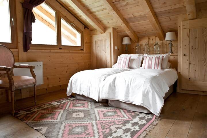 The chalet in Chamonix-Mont-Blanc has 8 bedrooms and capacity for 14 persons. Accommodation of 250 m² cozy and is spacious, It has mountain and river. The property is located 50 m river "Arve", 200 m bus station "Les Bois bus stop", 600 m golf course "Chamonix les Praz 18 hole golf course", 950 m train station "Chamonix Les Praz", 1 km ski resort "La Flegere", 3 km ski resort "Savoy Nursery Slopes", 4 km ski resort "Planards Nursey Slopes", 4 km ski resort "Le Brevent", 4 km city "Chamonix", 5 km supermarket "Carrefour", 5 km ski resort "Grands Montets", 5 km bus station "Chamoinx Sud Bus Station", 5 km hospital "Hospital Mont Blanc", 8 km ski resort "le Tour & Vallorcine", 13 km ski resort "Les Houches", 99 km airport "Geneva", 99 km international airport "Geneva Airport" and it is located in a a quiet zone and in a mountainous area. The accommodation is equipped with the following items: garden, outdoor furniture, terrace, washing machine, dryer, barbecue, fireplace, iron, internet (Wi-Fi), hair dryer, balcony, central heating, open-air parking in the same building, 4 fans, 1 TV, satellite tv (Languages: English, French), DVD. The open plan kitchen, of induction, is equipped with refrigerator, microwave, oven, freezer, dishwasher, dishes/cutlery, kitchen utensils, coffee machine, toaster, kettle and stove.