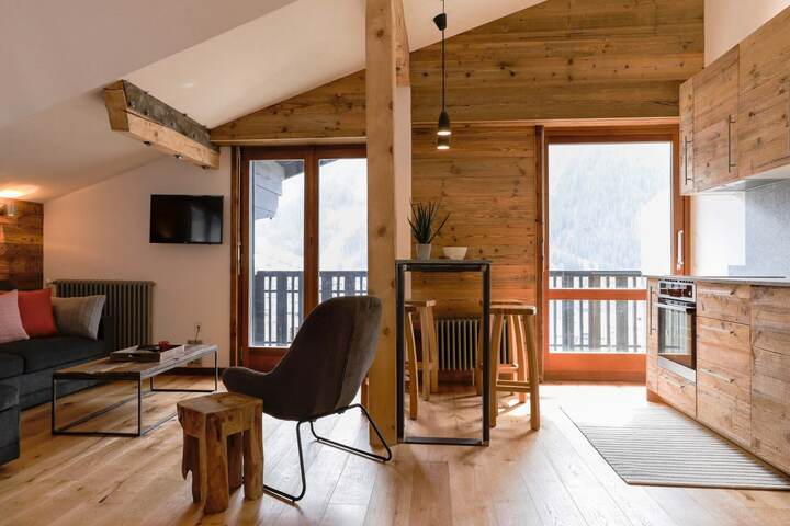 The apartment in Chamonix-Mont-Blanc has 2 bedrooms and capacity for 4 persons. Accommodation of 77 m² tastefully-furnished and is modern, located on at the foot of the ski slope, It has mountain. The property is located 99 m airport "Geneva Airport", 99 m international airport "Geneva Airport", 220 m ski resort "Le Brevent", 250 m bus station "Le Brevent", 350 m ski resort "Savoy Nursery Slopes", 400 m bus station "Chamonix Centre", 450 m supermarket "Casino", 500 m city "Chamonix Centre", 600 m the restaurant "La Caleche", 700 m river "Arve", 800 m the restaurant "Bize", 800 m the restaurant "Joia", 1 km train station "Chamonix-Mont-Blanc", 1 km bus station "Chamonix Sud Bus Station", 2 km ski resort "Planards Nursery Slopes", 2 km hospital "Hospital Mont-Blanc", 3 km ski resort "La Flegere", 3 km golf course "Chamonix Les Praz 18 hole golf course", 8 km ski resort "Grands Montets", 9 km ski resort "Les Houches", 12 km ski resort "Le Tour & Vallorcine" and it is located in a a well connected zone and in a mountainous area. The accommodation is equipped with the following items: elevator, outdoor furniture, washing machine, dryer, iron, internet (Wi-Fi), hair dryer, balcony, central heating, open-air parking in the same building, 2 fans, 1 TV. The open plan kitchen, is equipped with refrigerator, microwave, oven, dishwasher, dishes/cutlery, kitchen utensils, coffee machine, toaster, kettle and stove.