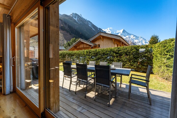 The chalet in Chamonix-Mont-Blanc has 5 bedrooms and capacity for 10 persons. Accommodation of 240 m² tastefully-furnished and is modern, It has mountain and garden. The property is located 400 m bus station "Mer de Glace bus stop", 500 m city "Chamonix Centre", 550 m train station "Chamonix-Mont-Blanc", 550 m the restaurant "Moo", 600 m the restaurant "Mess", 700 m ski resort "Planard Nursery", 700 m river "Arve", 750 m the restaurant "Mumma", 850 m supermarket "Super U", 900 m ski resort "Savoy Nursery", 1 km supermarket "Carrefour", 1 km ski resort "Le Brevent", 2 km bus station "Chamonix Sud bus station", 2 km ski resort "La Flegere", 3 km golf course "Chamonix les Praz 18 hole golf course", 3 km hospital "Hospital Mont-Blanc", 8 km ski resort "Grands Montets", 10 km ski resort "Les Houches", 12 km ski resort "Le Tour & Vallorcine", 99 km airport "Geneva Airport", 99 km international airport "Geneva Airport" and it is located in a a quiet zone and in a mountainous area. The accommodation is equipped with the following items: garden, outdoor furniture, terrace, washing machine, dryer, barbecue, fireplace, iron, internet (Wi-Fi), hair dryer, central heating, garage and parking in the same building, 3 fans, 2 TVs, satellite tv (Languages: English, French). The open plan kitchen, of induction, is equipped with refrigerator, microwave, oven, freezer, dishwasher, dishes/cutlery, kitchen utensils, coffee machine, toaster, kettle and stove.